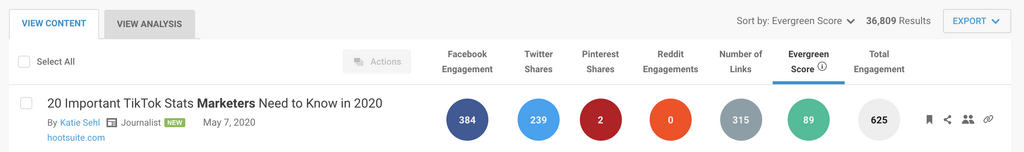 Prioritize by evergreen score to see which content receives the highest number of social engagements over a sustained amount of time, after being published.