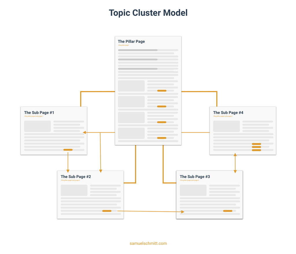 For more on topic and cluster content, read about how SEO expert, Samuel Schmitt, boosted his website traffic by a full 1,000% using this model.
