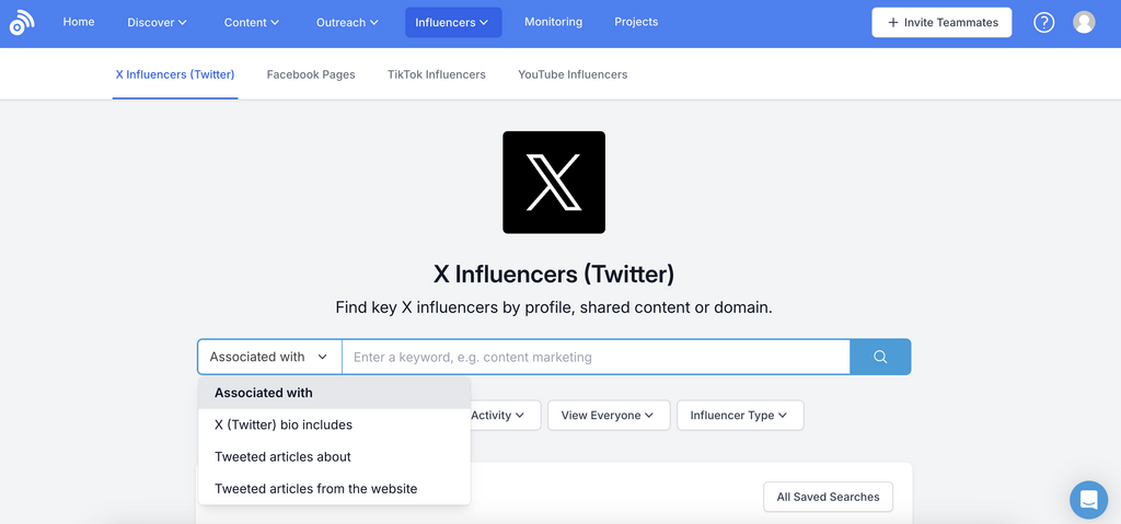 Associated with: Find influencers who include your keyword in their bio OR appear on a relevant twitter list. The more aligned the influencer is with your focus areas, the more authentic the partnership will be and the more likely their audience are to engage with your brand.X bio includes: Find influencers who include your focus keyword in their Twitter bio. If you’re searching for journalists, try also to include their publication name in your search. What can you give them that no one else can? A better story? Unique data & statistics? A platform to boost their own profile?Tweeted articles about: Find influencers who shared content related to your keyword.Tweeted articles from the website: Find influencers who shared content from a specific domain or URL. Examine your own content or find the influencers sharing content from your competitors. Communicate your differentiators and value proposition.