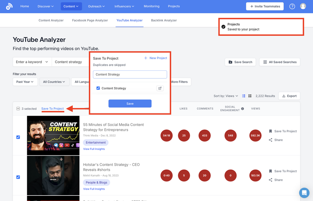Whether you need to analyze the cocitations of your clients’ press clippings, or research the engagement of specific content for your next PR campaign, Projects has you covered.