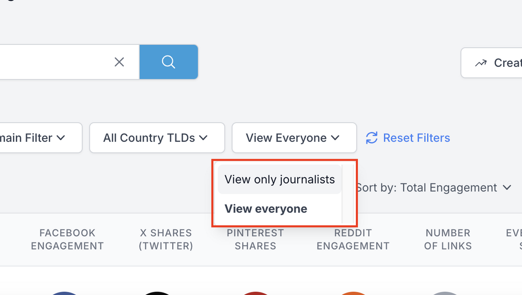 Are you expanding into a new market, and only want to see news headlines from Poland? Then choose .pl in the country TLD filter and hit the journalist filter.Are you tired of seeing content from that one publication that will never inspire your next campaign? Exclude it with a domain filter.Do you want to hone in on press content and find journalists to pitch to? Toggle from “View everyone” to “View journalists”