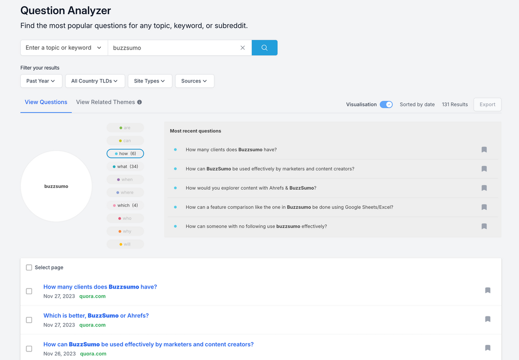 Build out your customer-led keyword strategy even further by heading to the Question Analyzer, and discover five years’ worth of questions that your customers are actually asking, from across 250K forums and website blog comment sections.