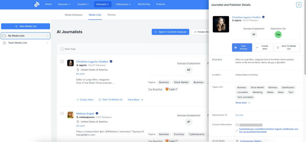 With a tool like BuzzSumo, your media list is a living, breathing index of forever-up-to-date contacts and content.