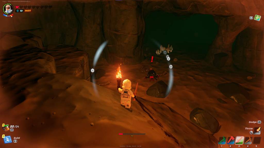 I was able to find a Blaster while exploring the lava caves, and they are not easy to deal with. On top of double-checking to make sure you have enough heat resistance to protect yourself from the harsh elements of this environment, the Blaster is exceptionally aggressive. Like the Sand Roller and the Roller that you can also find in your LEGO Fortnite world, the Blaster will have multiple attacks that it can use against you. However, the trick to getting a Blast Core is to make sure that you defeat one before it explodes.