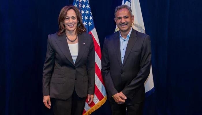 US Vice President Kamala Harris (L) and Pakistani-American Democrat Dr Asif Mahmood pose for a picture.— By reporter