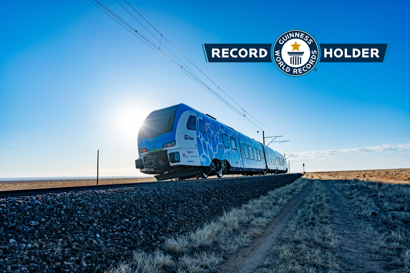 Stadler said that the FLIRT H2 has made it into the Guinness World Records database for the longest distance traveled by a pilot hydrogen fuel-cell, electric multiple-unit passenger train without refueling or recharging, covering 1,741.7 miles (2,803 kilometers). The Swiss company presented the train at InnoTrans 2022 in Berlin. “A significant number of detailed solutions were developed to integrate fuel cells and hydrogen storage systems into the modern FLIRT commuter train product line,” said Stadler. “These solutions have since been tested thoroughly, first in Switzerland and more recently on a dedicated test ring in Colorado in the United States.”