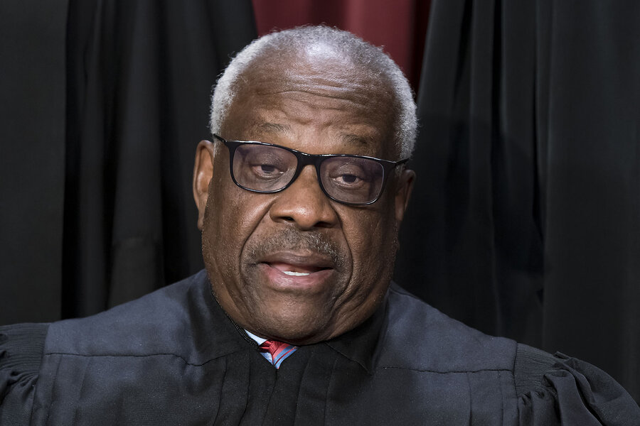 Associate Justice Clarence Thomas poses for a portrait at the Supreme Court in Washington Oct. 7, 2022.