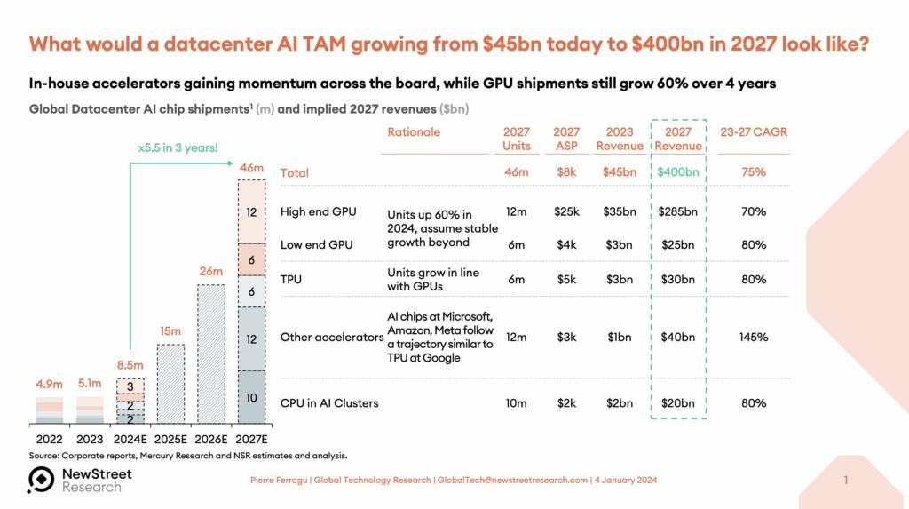 AI chips will reach over $400 billion per year in revenue in 2027.
