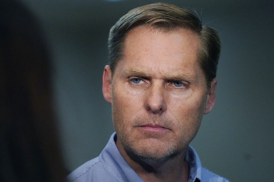 U.S. Rep. Michael Guest listens to a reporter’s question in Jackson, Mississippi, Nov. 8, 2022. The Republican chair of the House Committee on Ethics sponsored the resolution that expelled Republican George Santos Dec. 1, 2023.
