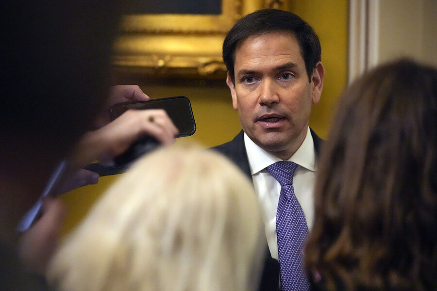 Sen. Marco Rubio, R-Fla., one of several possible Republican vice presidential picks, speaks with members of the media Feb. 28, 2024, at the Capitol in Washington.