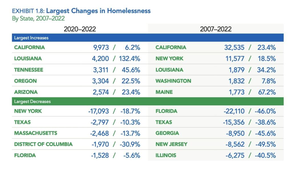 Texas’ homeless population shrunk by nearly a third over the past decade, while California’s grew by 43%, according to the federally mandated point-in-time count. And in the Golden State, 439 people are homeless for every 100,000 residents – compared to 81 in the Lone Star State.
