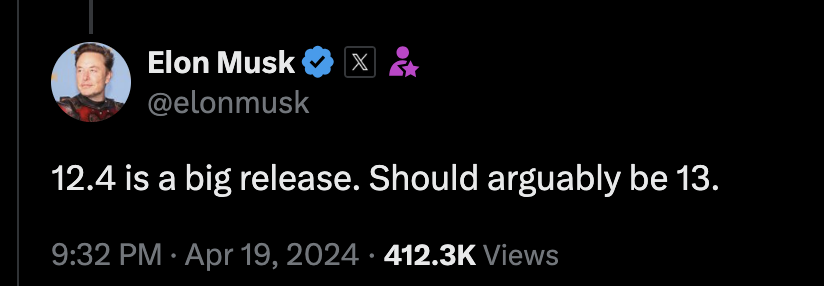 Elon Musk reasserts that Tesla FSD 12.4 will be another big improvement and will be released soon.