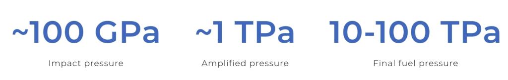 The targets are a key technology in First Light’s approach to fusion and they are nearly all trade secrets. One example uses three cavities, two big and one small. The collapse of the two bigger cavities focuses the pressure onto the small one in between, which is collapsed with a higher pressure and from two sides rather than one. The carefully shaped targets can amplify the impact power. They will model and control the waves of forces so that effects and pressures are amplified.