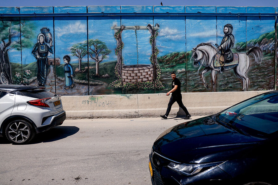 A Palestinian man walks past a mural on a security barrier outside Jerusalem, July 17, 2023. The Israeli Supreme Court has stood in the way of steps that could lead to Israeli annexation of the occupied West Bank, which the U.S. opposes.