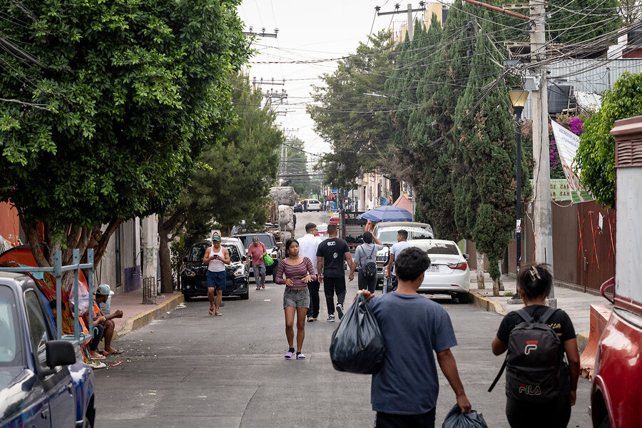 It’s been a shock for families and businesses near the shelter to suddenly see people from Venezuela, Haiti, Ecuador, and Nicaragua in the neighborhood looking for work, sleeping in alleyways, and trying to care for their families as they wait for beds to open or an asylum appointment to be confirmed. But despite some grumblings and glimmers of xenophobia, Mr. Carbajal feels the reception has been overwhelmingly positive: Locals regularly drop off food and clothing, or pass through to give free services, such as haircuts.