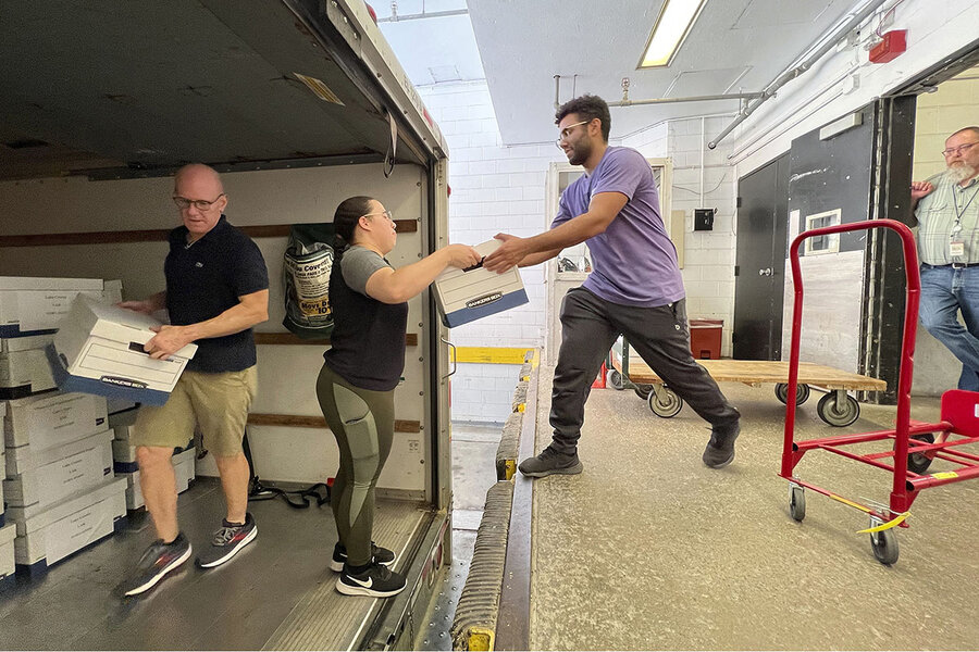 Boxes of signatures are delivered to Republican Secretary of State Frank LaRose’s office in downtown Columbus, Ohio, July 5, 2023. Advocates of enshrining abortion rights in Ohio’s Constitution delivered nearly double the number of signatures needed to place an amendment on the November ballot.