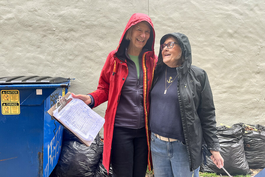 Washington, D.C., residents Susan Sedgewick, holding her rat count clipboard, and Marian Connolly patrol the alley behind their homes.
