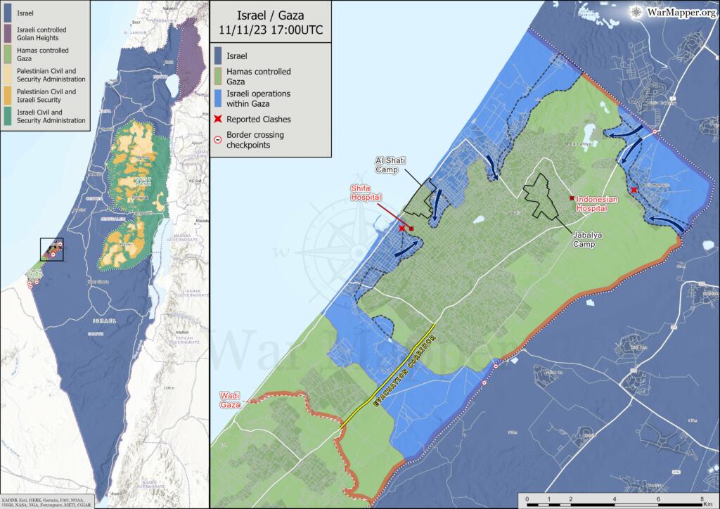 Levent Kemal reports on X/Twitter : Clashes in Gaza’s western flank intensify around hospitals, approximate latest situation: