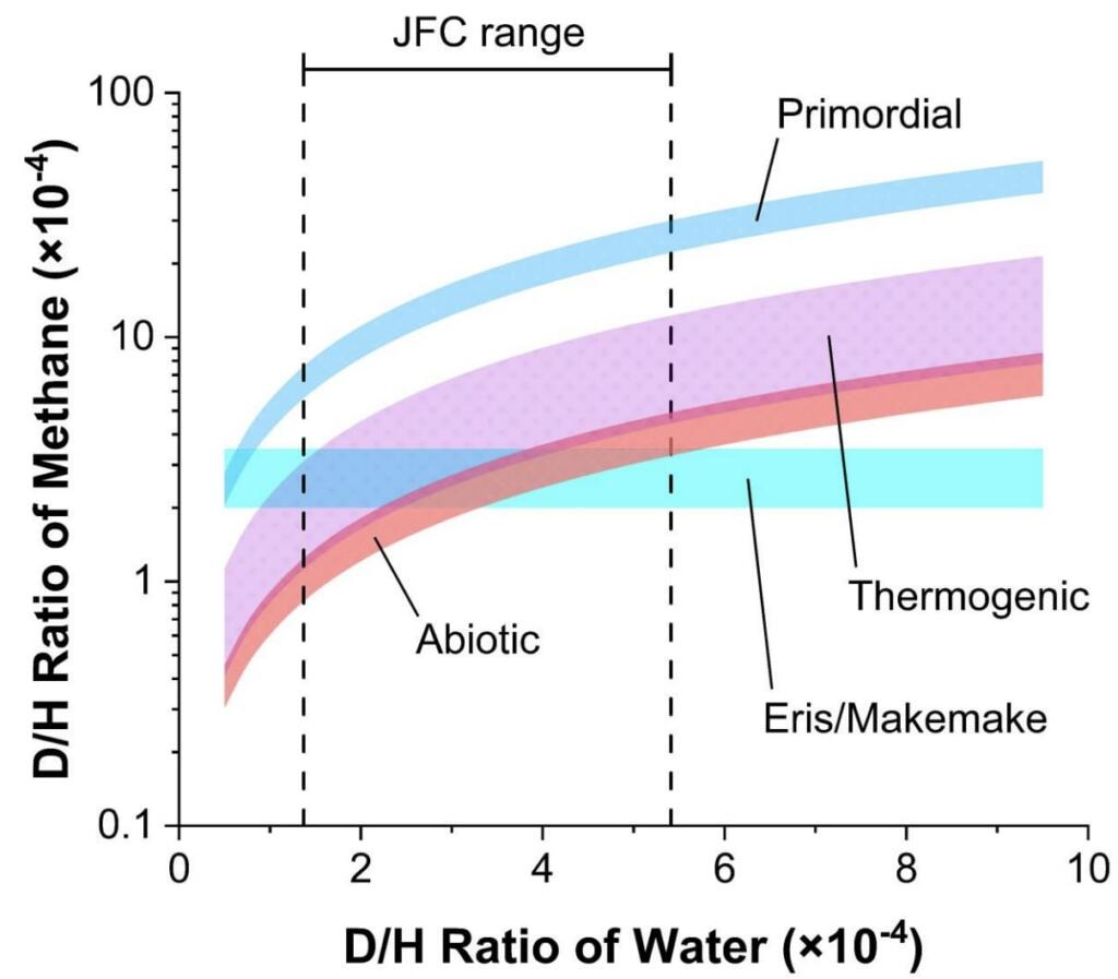 Dwarf planets Eris and Makemake (out by Pluto) have surfaces bearing methane ice of unknown origin. This ice can provide important insights into the origin and evolution of volatiles in the outer solar system.