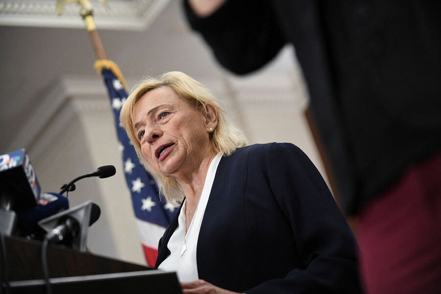Maine Gov. Janet Mills addresses the media during a press conference in Lewiston City Hall Oct. 26, 2023, after deadly mass shootings in Lewiston.