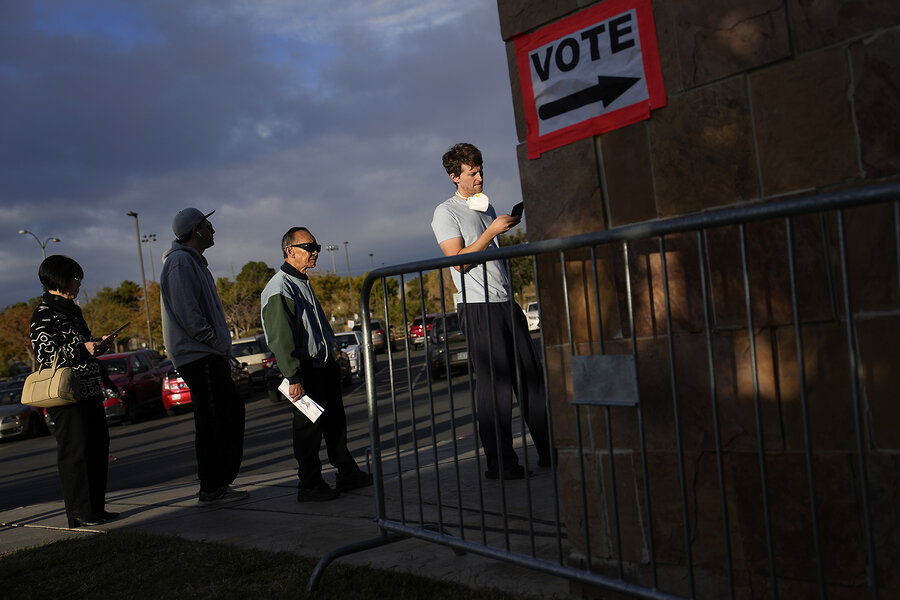 People wait in line to vote at a polling place Nov. 8, 2022, in Las Vegas.