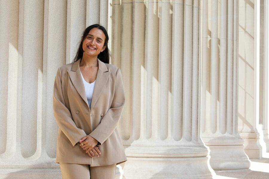 Evelyn De La Rosa poses at MIT Oct. 24, 2023, in Cambridge, Massachusetts. Ms. De La Rosa, who transferred from LaGuardia Community College in New York and is a mother of a toddler, is studying electrical engineering and computer science.