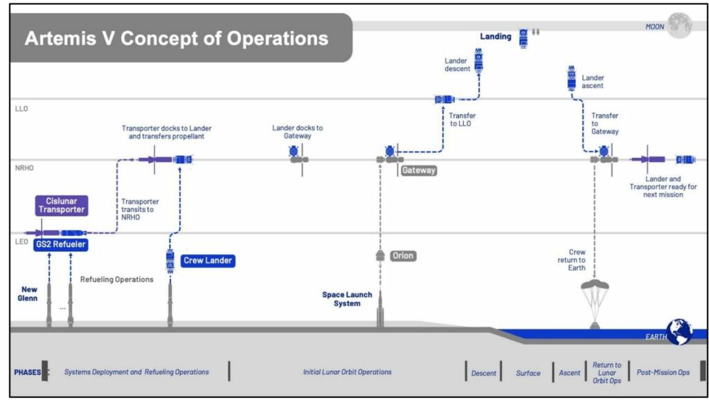 SpaceX’s Starship HLS will be prepositioned in Near-Rectilinear Halo Orbit (NRHO) to receive crew. SpaceX will start by launching a storage depot variant of Starship to Earth orbit, followed by a series of reusable tanker Starship variants that will carry propellant to the storage depot. The Starship HLS will