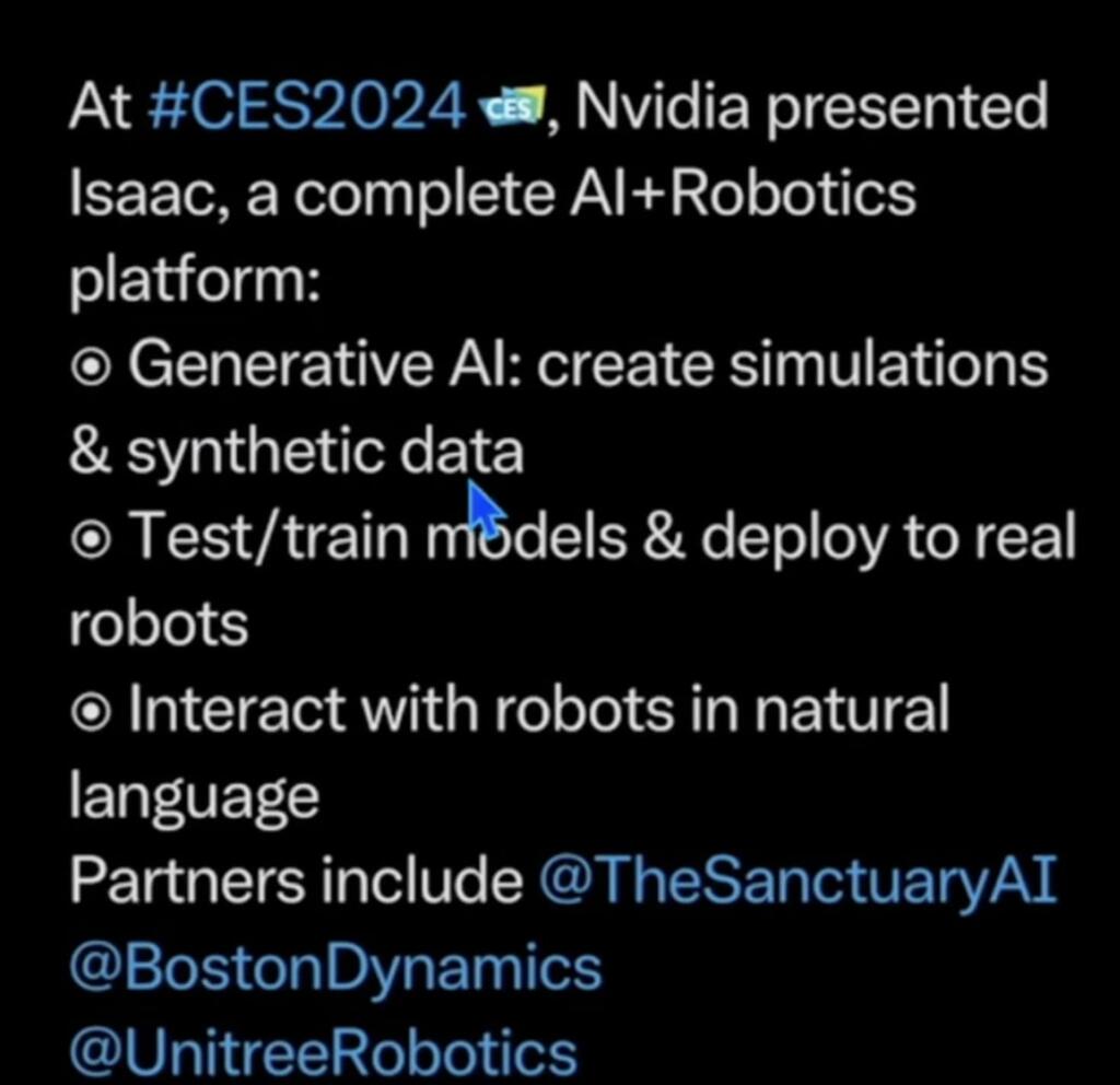 At #CES2024, Nvidia presented Isaac, a complete AI+Robotics platform:
