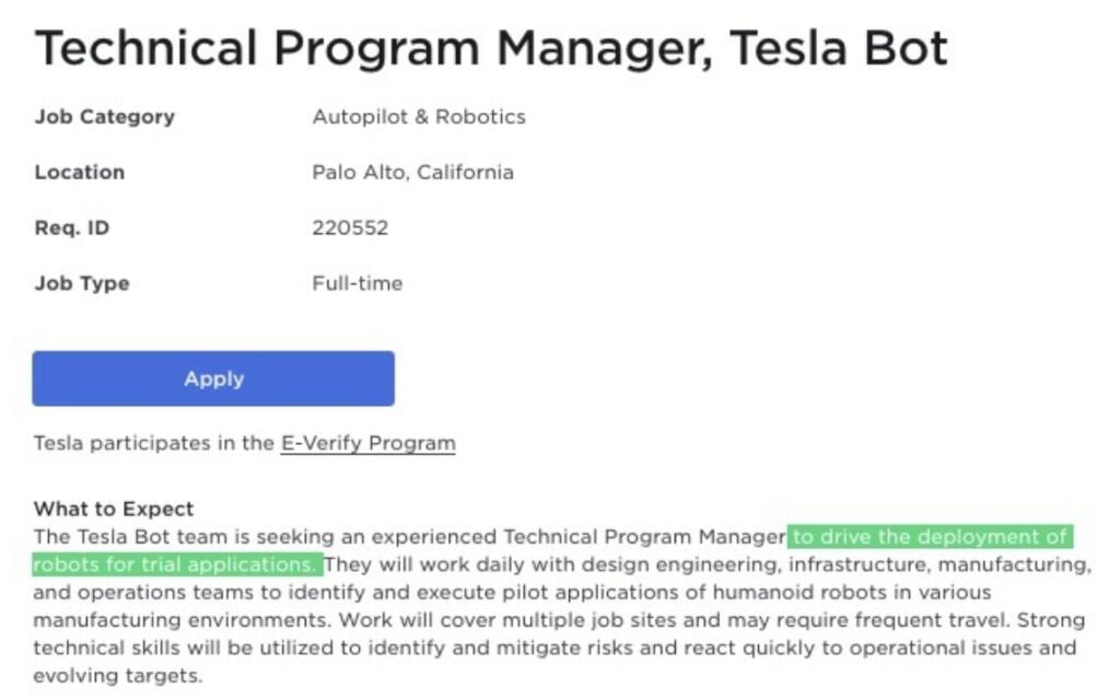 Optimus Teslabot is ready for field trials in multiple factories according a job posting.