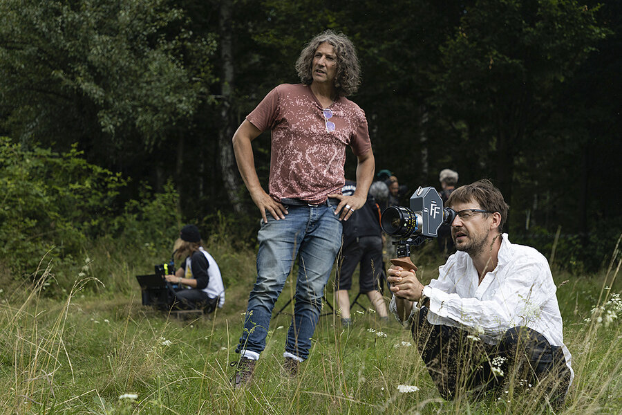 Director Jonathan Glazer (center) is shown here on the set of “The Zone of Interest,” which was nominated for 11 Academy Awards, including best picture.
