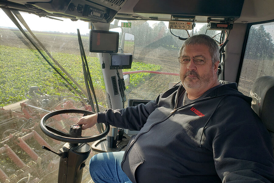 Dean Haubenstricker, harvesting sugar beets near Frankenmuth, Michigan, in November 2023, says this is shaping up to be a good year, in part because of the price outlook.