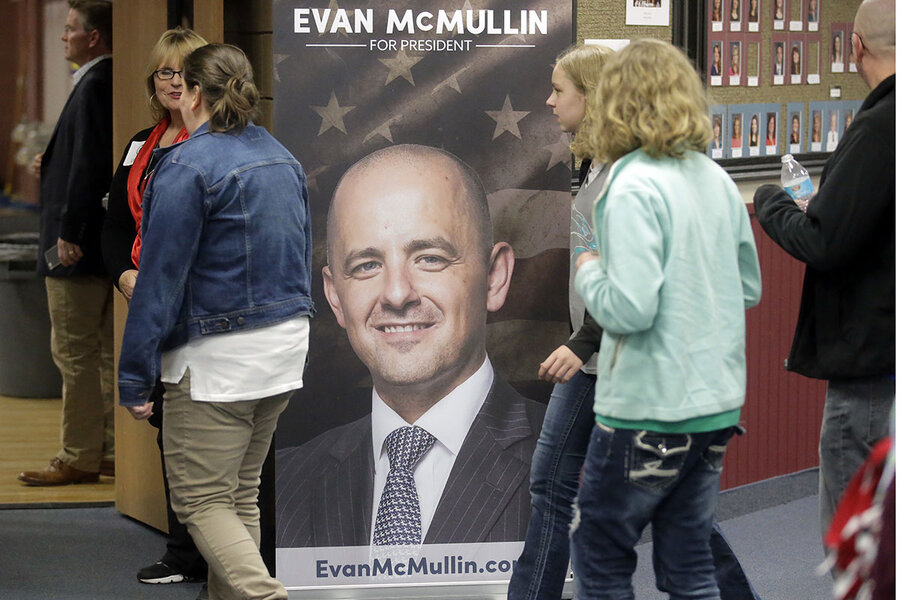 Supporters for independent presidential candidate Evan McMullin arrive for a rally, Oct. 21, 2016, in Draper, Utah.
