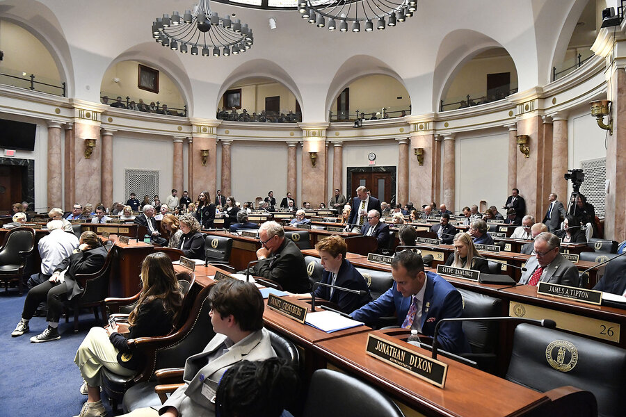 Members of the Kentucky House of Representatives listen during a floor discussion of a House bill in Frankfort, Feb. 1, 2024. The Kentucky House voted on March 15 to end funding for diversity, equity, and inclusion offices at public universities.