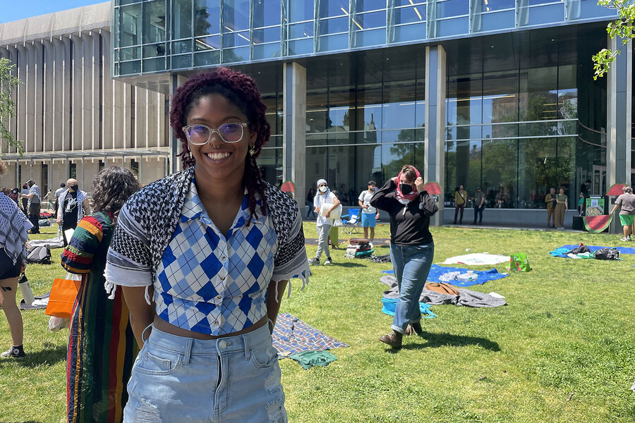 Niya Shorts, for example, a criminal justice student who’s studying in the spring sunshine a few blocks from the protest, says she’s most concerned about affordable schooling, housing, and gun control. But she says she plans to “look again” at both Mr. Biden and former President Donald Trump before making a decision.