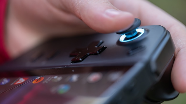 The somewhat odd aspects of the controller layout make more sense when you flip the switch on the right-hand controller to “FPS” and attach it to the included magnetic base plate. This turns it into a sort of mouse that you grip like a flight stick. It certainly makes some games more playable than if you only had thumbsticks, but it takes a long time to acclimate. We also found that with most games we needed to customize the button layout when using the Legion Go in FPS configuration.